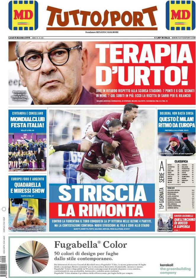 Le prime pagine dei quotidiani sportivi del 09-12-2019