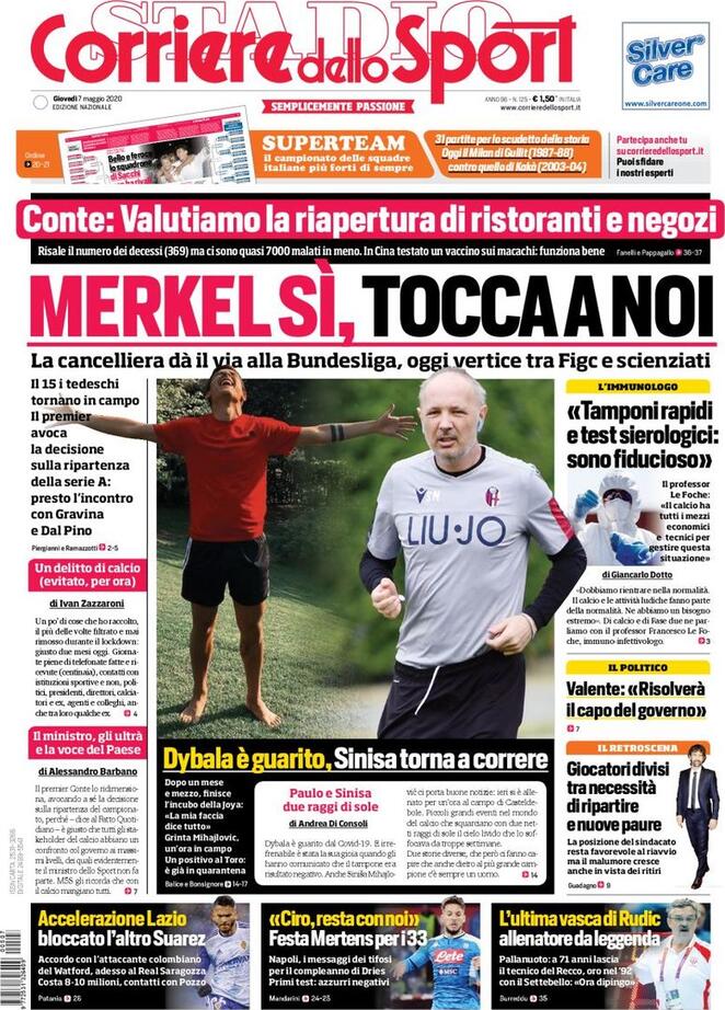 Le prime pagine dei quotidiani sportivi del 07-05-2020