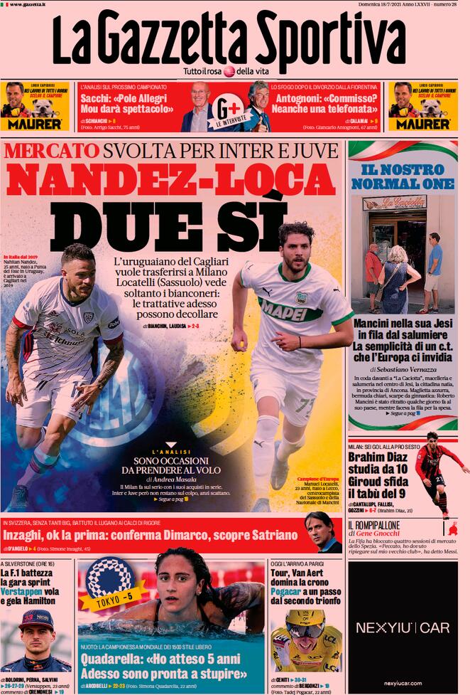 Le prime pagine dei quotidiani sportivi in edicola domenica 18 luglio 2021