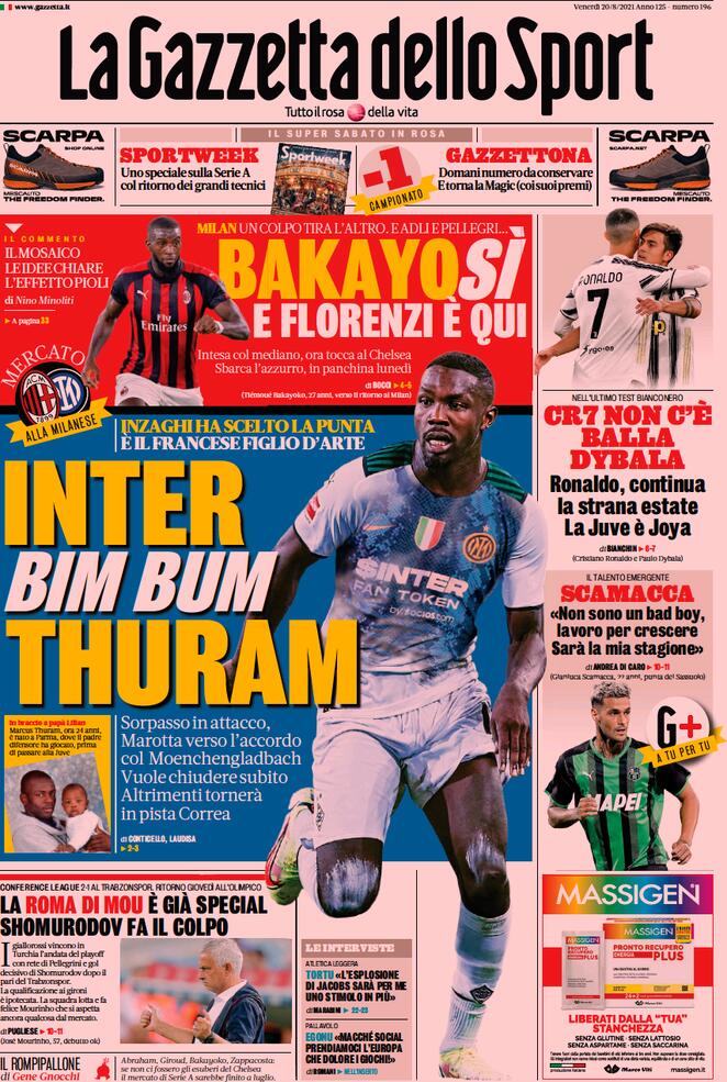 Il nostro buongiorno con le prime pagine dei quotidiani sportivi in edicola oggi