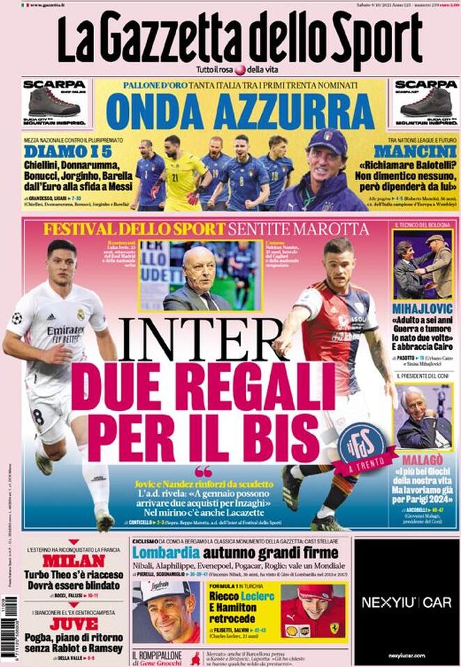 Buongiorno dalla nostra redazione con le prime pagine dei quotidiani sportivi in edicola oggi